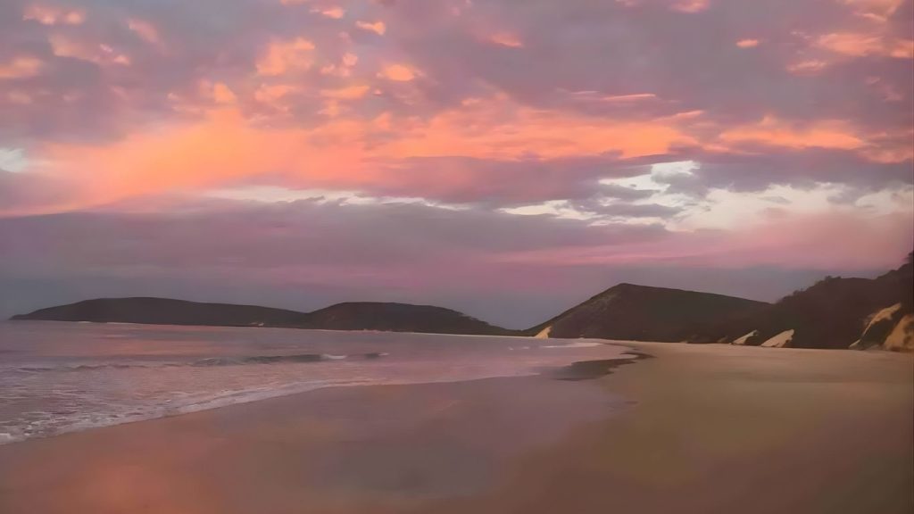 When the day is done head back along the beach or else cut in on Freshwater track – an beautiful drive through the Rainforest and make a stop at “Poona Lake” a perched lake with silica white sand and water stained a deep reddy/brown from the Malaluka (Tea Tree) leaves that surround it.